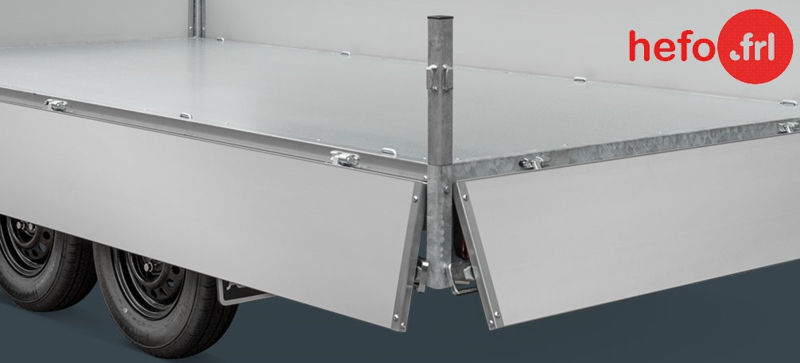 met rondom neerklapbare aluminium bordenset, bindhaken in de bak, een robuust neuswiel, eigen kenteken, kentekenbewijs en tenaamstelling.